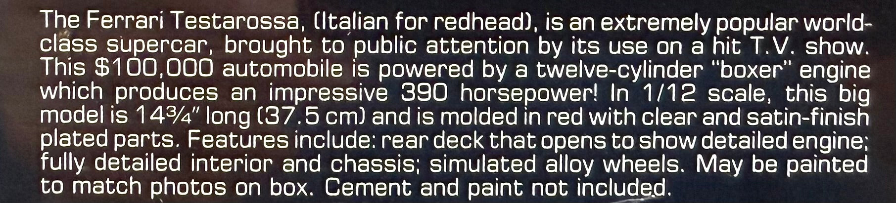 Ferrari Testarossa 1/12 "Exotic Car Series" 1988 ISSUE